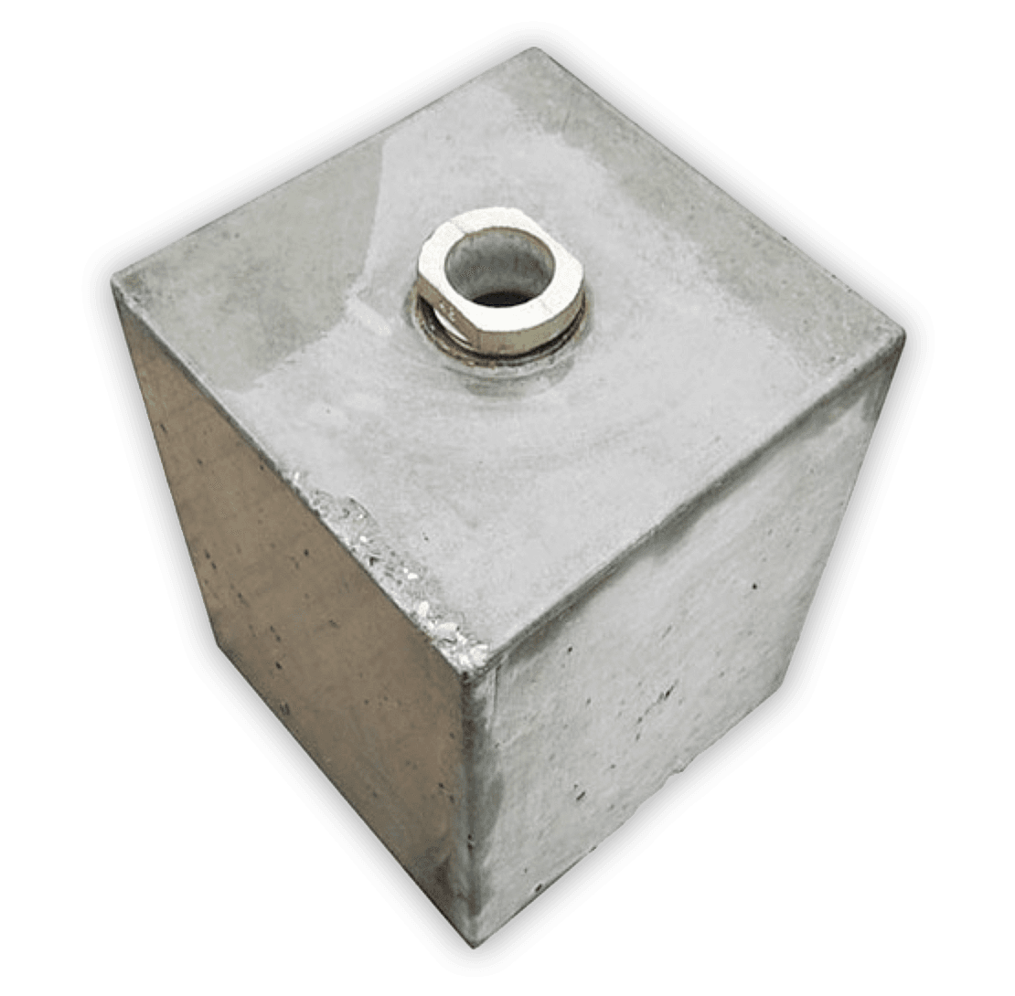 Betonpoer 300x300mm met ingegoten gietijzeren grondhuls Ø48mm.